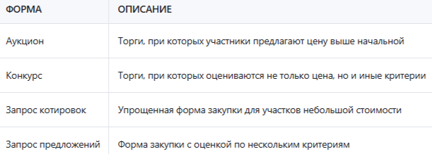 Таблица: сравнение форм проведения торгов на земельные участки