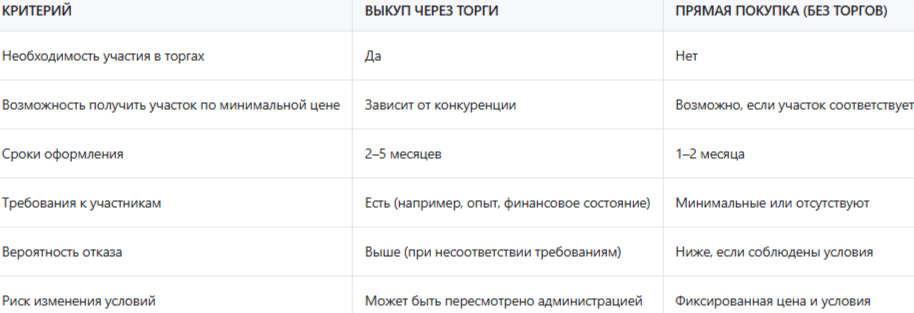 Сравнение: выкуп через торги vs. прямая покупка