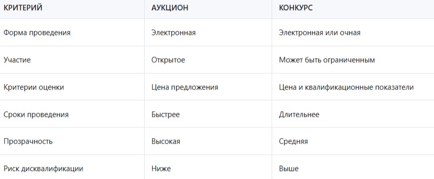 Сравнение форм участия в торгах
