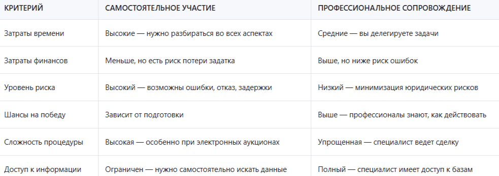 Сравнение: самостоятельное участие vs профессиональное сопровождение