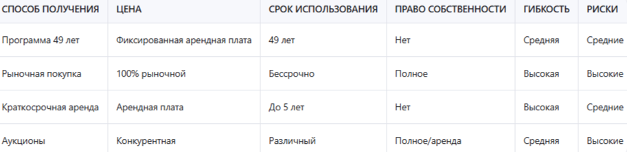 Аренда земли на короткий срок является альтернативой программе 49-летней аренды, особенно для тех, кто не готов к длительным обязательствам. Однако короткосрочная аренда не даёт стабильности для долгосрочных инвестиций, и арендатор остаётся зависимым от условий договора и решений арендодателя. При этом короткосрочная аренда может быть более гибкой и требовать меньших начальных вложений. Однако для долгосрочных инвестиций и развития бизнеса программа 49-летней аренды является более предпочтительным вариантом. Особенно это важно для тех, кто рассматривает землю как долгосрочный инвестиционный актив.