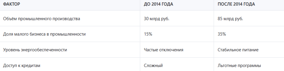Эти данные показывают, что инвестировать в промышленные проекты в Крыму становится всё выгоднее. Особенно перспективны направления: пищевая промышленность, переработка сельхозпродукции, производство стройматериалов и IT-инфраструктура.