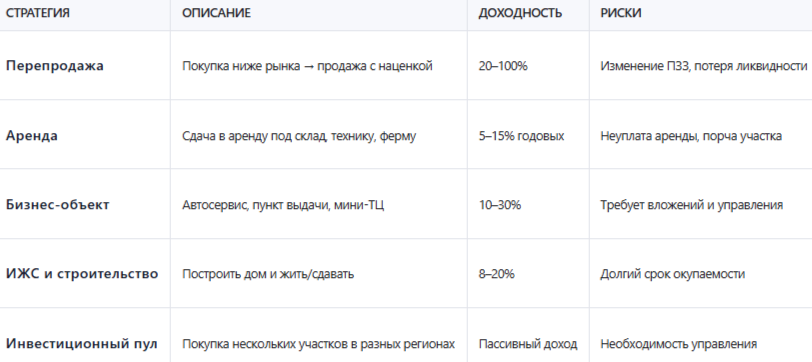 Если вы рассматриваете участок как инвестиционный актив, важно правильно выбрать стратегию. Вот несколько вариантов: