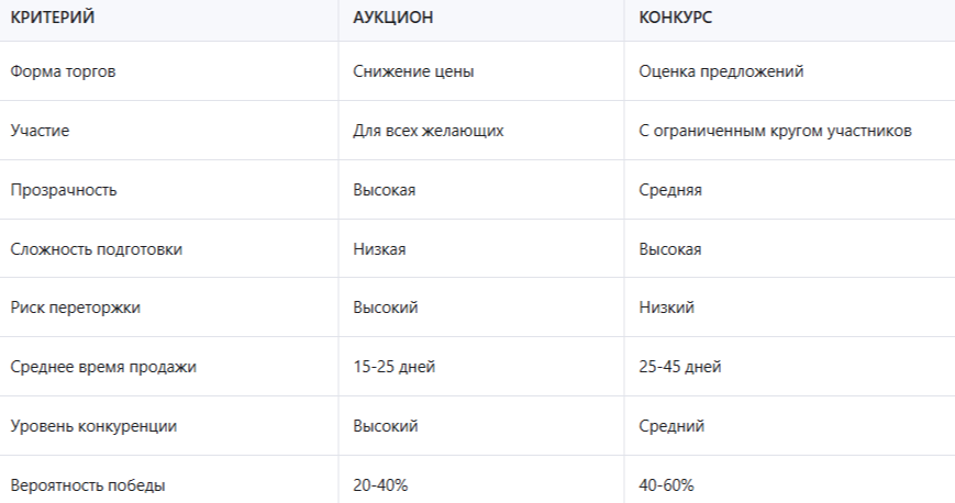 Сравнение форм торгов: аукцион vs конкурс