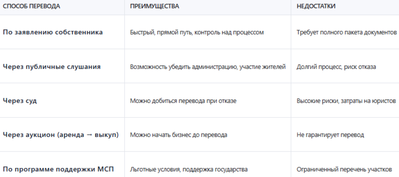 Сравнение способов перевода земель: преимущества и недостатки