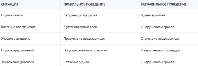 Таблица: правила поведения на аукционе земельных участков