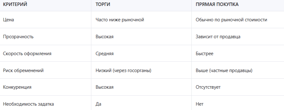Как видно из таблицы, торги — это более безопасный и выгодный способ, особенно при покупке земли у государства. Однако они требуют больше времени и усилий на подготовку.