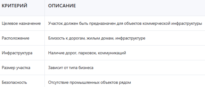 Какие виды участков доступны для бизнеса?