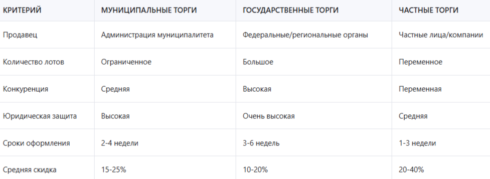 Как видно из таблицы, муниципальные торги предлагают оптимальное сочетание юридической защиты, доступности и потенциальной выгоды. Однако они требуют больше времени на оформление и могут иметь специфические требования к участникам.