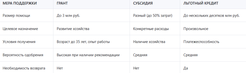 Ответ: Гранты выдаются, как правило, начинающим фермерам, и средства направляются на развитие хозяйства, включая приобретение техники, животных и оборудования. Покупка земли возможна, если участок уже находится в аренде и планируется его выкуп.