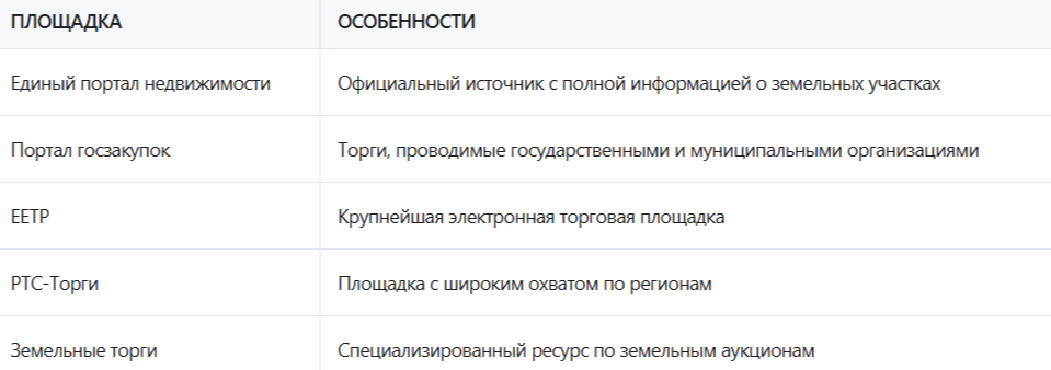 Среди основных площадок, где можно найти торги на дачные участки: