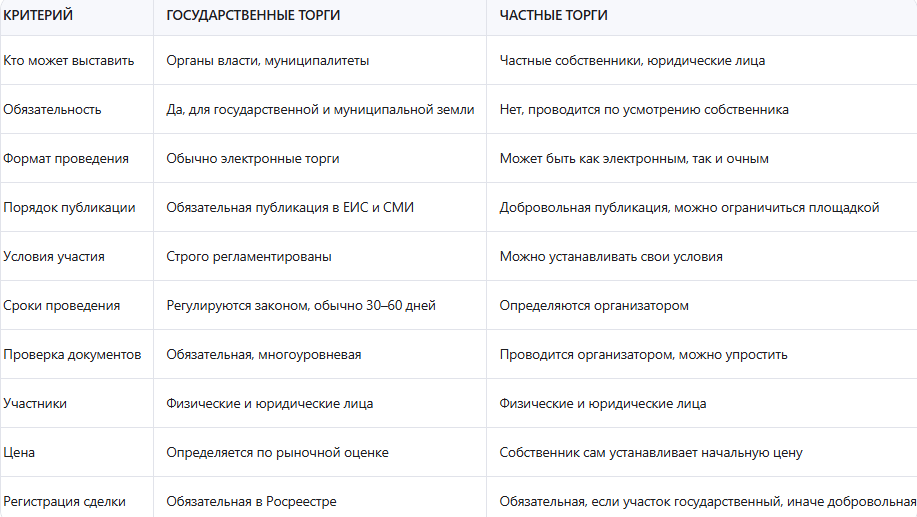 Чтобы понять, как выставить землю на торги, важно разобраться, в чем разница между государственными и частными аукционами. Ниже приведена таблица, которая поможет оценить преимущества и недостатки каждого подхода.