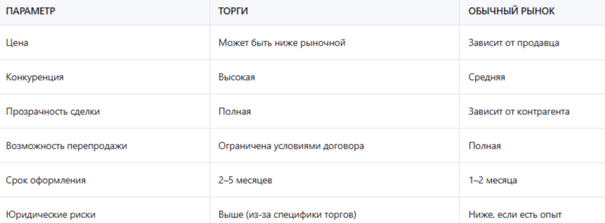 Сравнение: покупка через торги vs. обычный рынок