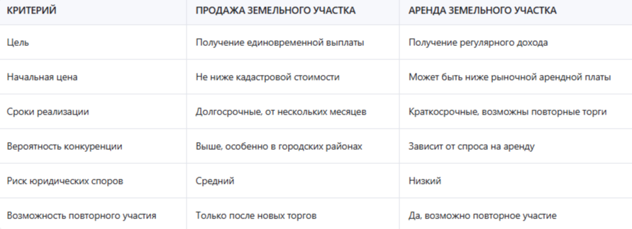 Сравнение форматов торгов: продажа vs аренда