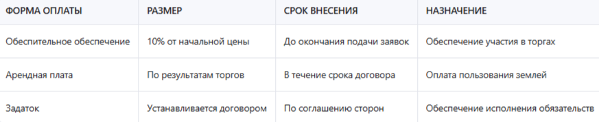 Оплата при участии в торгах по аренде земельных участков осуществляется в нескольких формах: